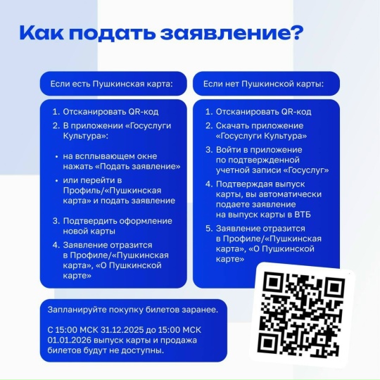 С 1 января 2026 года банком-оператором программы «Пушкинская карта» станет ВТБ. Чтобы и дальше посещать культурные мероприятия нужно подать заявление на перевыпуск карты.
