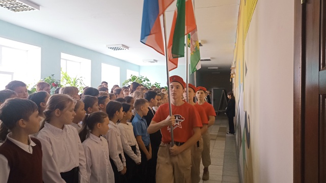 Сегодня на линейке — после подъёма флагов и исполнения гимнов РФ и РТ — заместитель директора по воспитательной работе Михайлова Е.В. вручила обучающимся грамоты за различные достижения и напомнила о важных моментах.