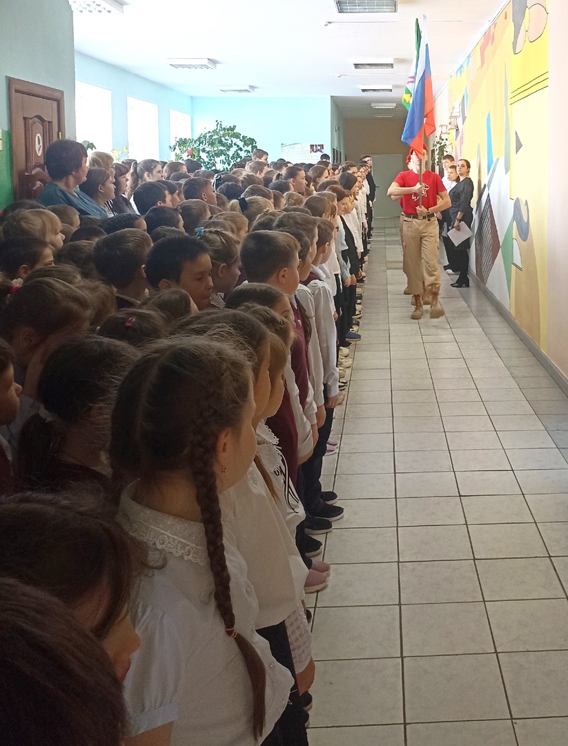 Затем вся школа проследовала в свои классы на Разговоры о важном.Бүген атналык линейка РФ һәм ТР гимннарын җырлау һәм флаглар күтәрү белән узды. Биләр мәктәбе директоры Климова м.а. киләсе атнага планнар белән таныштырды һәм конкурсларда нәтиҗәле катнашулары өчен грамоталар һәм дипломнар белән котлады. 7 Б сыйныф яңалыклар белән уртаклашты.