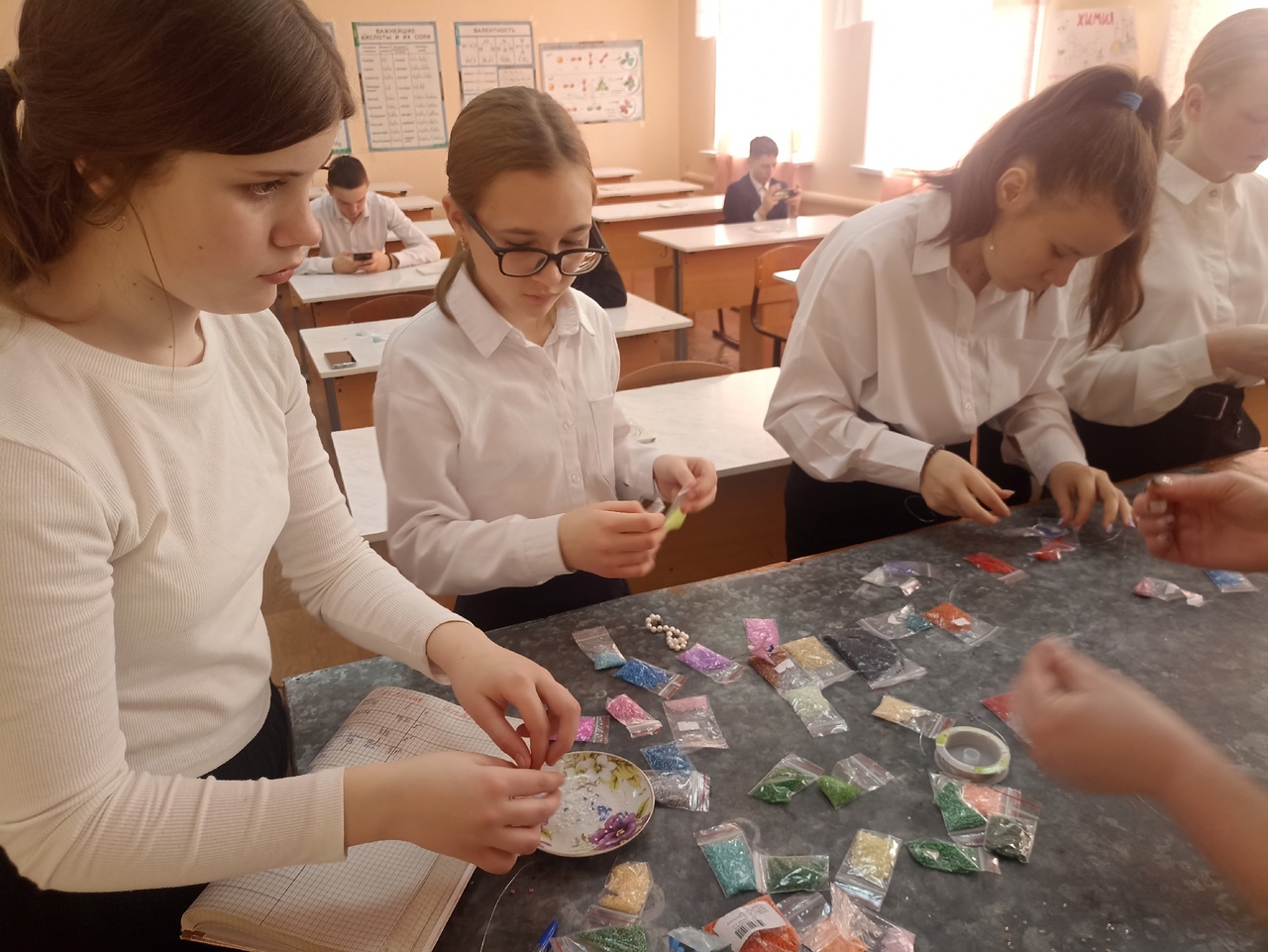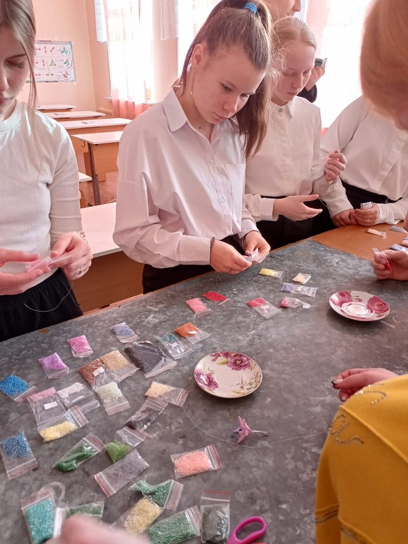 Сегодня сотрудники Билярской сельской библиотеки провели мастер класс с обучающимися Билярской школы по изготовлению цветка из бисера. -