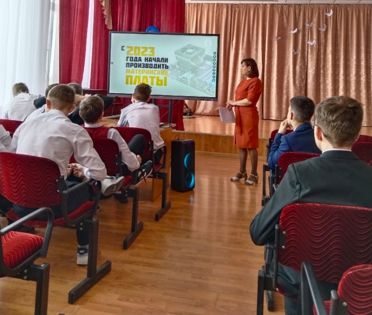 База дәрәҗәсендәге профминимумны гамәлгә ашыру кысаларында Биләр мәктәбендә "Россия — цифрлы технологияләр иле: цифрлы технологияләр һәм ясалма интеллект өлкәсендәге һөнәрләр һәм казанышлар турында беләм"дигән темага дәрес узды. -