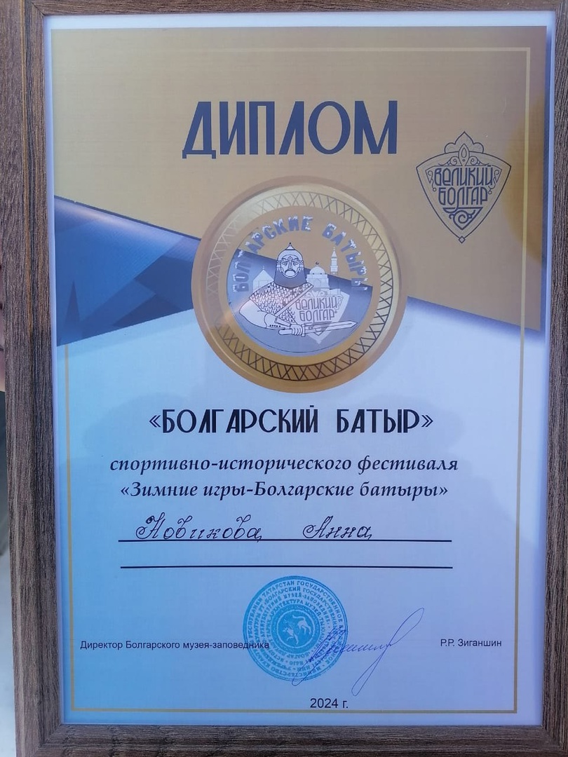 Бүген Болгар музей-тыюлыгы территориясендә "кышкы уеннар-Болгар батырлары"спорт - тарихи фестивале узды. Биләр мәктәбенең 9 сыйныф укучысы Анна Новикова спорт-тарихи һәм интеллектуаль ярышларда җиңү яулады.