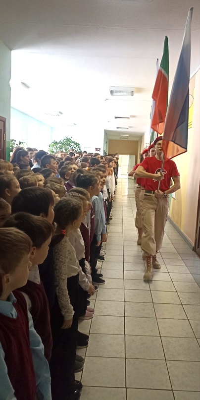 Затем вся школа проследовала в свои классы на Разговоры о важном на тему "День Российской науки".Бүген атналык линейка РФ һәм ТР гимннарын җырлау һәм флаглар күтәрү белән узды. Биләр мәктәбе директоры Климова м.а. узган атнага йомгак ясады һәм конкурсларда нәтиҗәле катнашуы өчен котлады, укытучыларга грамоталар һәм күңелле бүләкләр тапшырды.