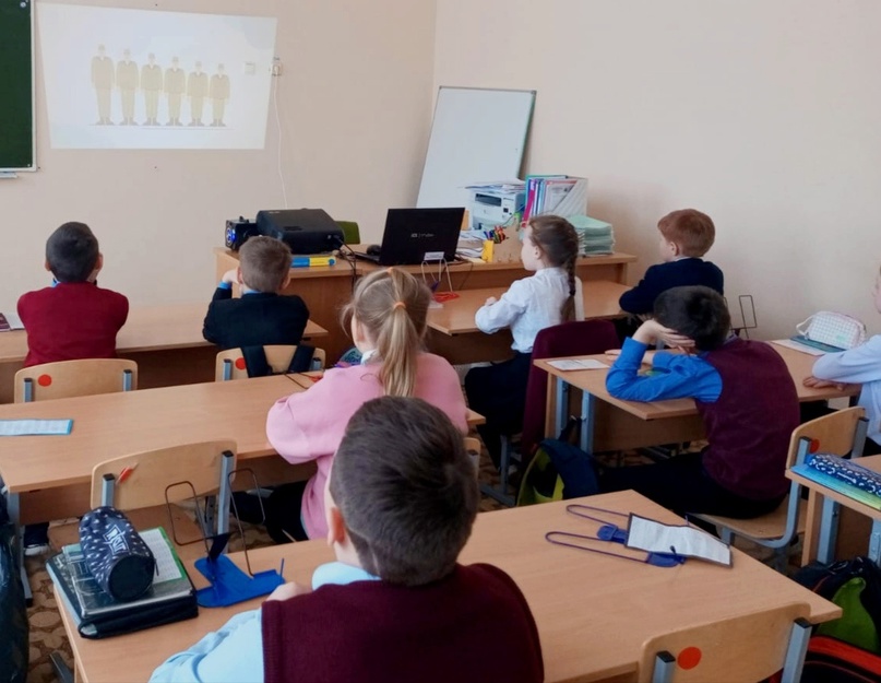 Затем вся школа проследовала в свои классы на Разговоры о важном на тему "Союзники России"
