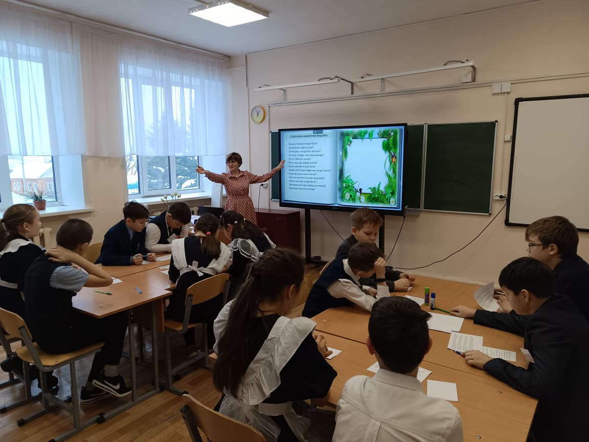 Билярскую школу представляла учитель родного языка и литературы высшей квалификационной категории Зарипова Танзиля Талгатовна. Она показала урок родного языка в 5 классе по теме «Ел фасыллары» и мастер –класс «Татар теле һәм әдәбияты дәресләрендә текст өстендә эш алымнары куллану аша укучыларның функциональ грамоталыгын үстерү»