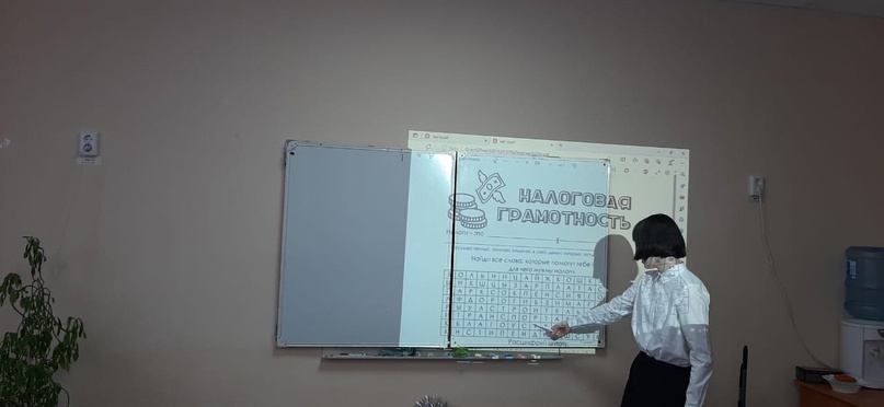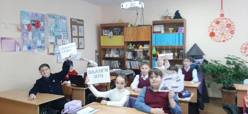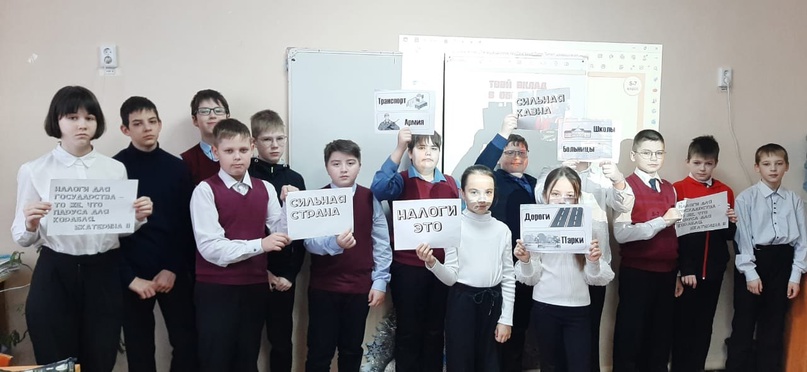 Затем вся школа проследовала в свои классы на Разговоры о важном на тему "Налоговая грамотность"