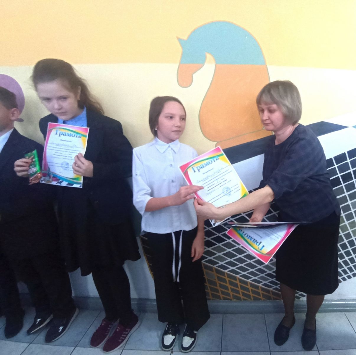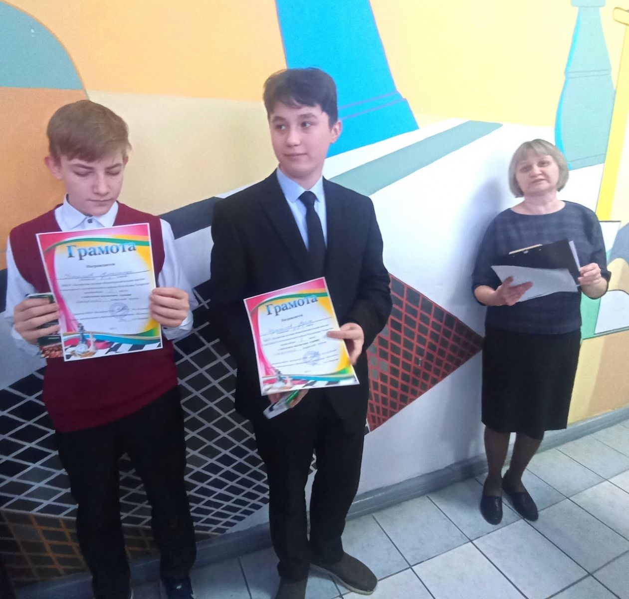 Сегодня, в последний рабочий понедельник уходящего года еженедельная линейка состоялась с поднятия флагов и пения гимнов РФ и РТ. Заместитель директора по учебной работе МБОУ "Билярская СОШ" Измайлова Э. А. наградила ребят и активных учителей грамотами и дипломами за результативное участие в шахматном турнире. Обучающиеся 11 класса поделились новостями.
