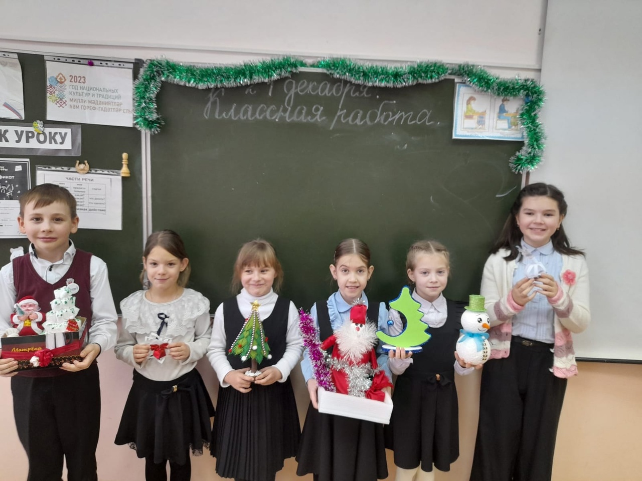 Третий "День творчества" прошёл под девизом "Талантливый ребенок - талантлив во всём". Ребята с 1 по 4 класс изготовили поделки своими руками на тему "Праздник к нам приходит". Прошла выставка рисунков "Зимушка - зима!" первоклассников. Деды Морозы 4 класса получились славные.Башлангыч сыйныфлар атналыгы.
