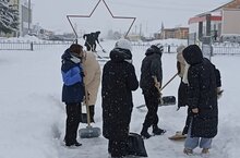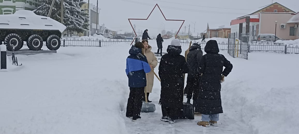 Очистка территории Вечного огня от снега/Мәәгелек ут территориясен кардан чистарту 03.12.2023
