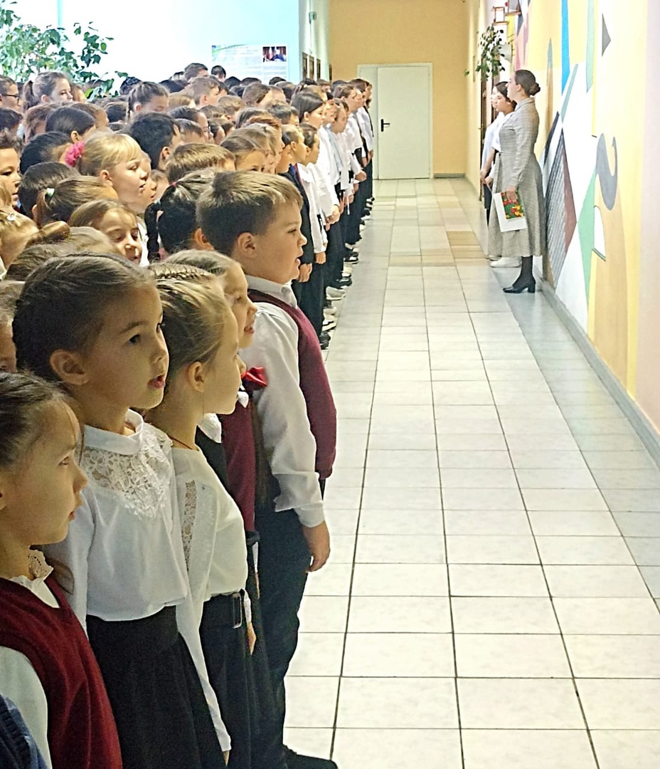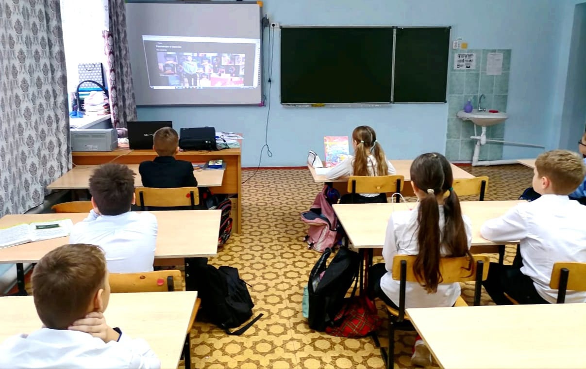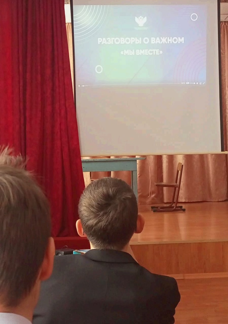 Затем вся школа проследовала в свои классы на Разговоры о важном на тему "Мы вместе"