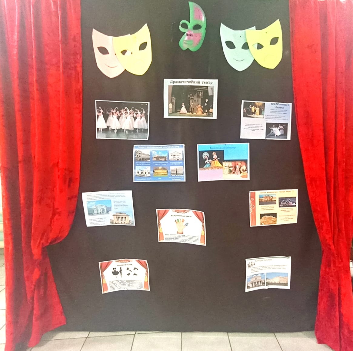 "Театр һәм балалар" мәктәп театрлары һәм "Сәхнә" татар театры үзләренең театр атнасын стендлардагы театр белән танышып, күргәзмәнең матур бизәлеше рәвешендә башладылар. Тематик Театр атналыгын үткәрүнең төп максаты-балаларның иҗади сәләтләрен театр сәнгате чаралары белән үстерү.