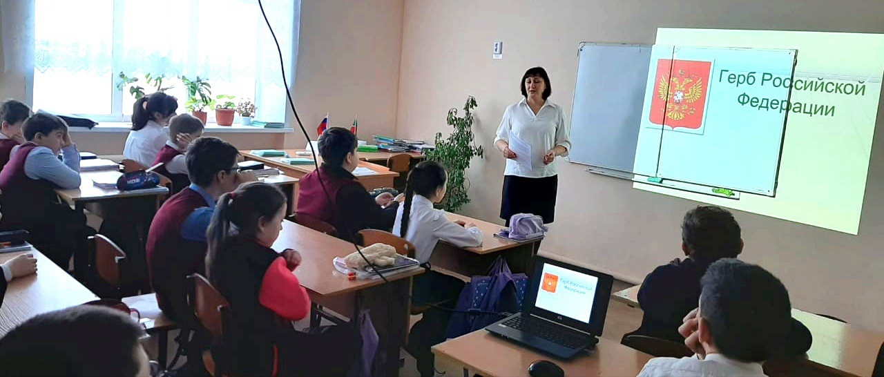 "Биләр урта гомуми белем бирү мәктәбе" директорының тәрбия буенча киңәшчесе Борисова Н. ю.11 сыйныф укучылары белән "Россия герблары"өстәл уены үткәрде. Уен барышында балалар гербларның килеп чыгышы турында белделәр. Ә 5 һәм 6 сыйныф укучылары белән Россия дәүләт Гербының тарихы һәм әһәмияте турында презентация, роликлар һәм документаль фильм карадылар.