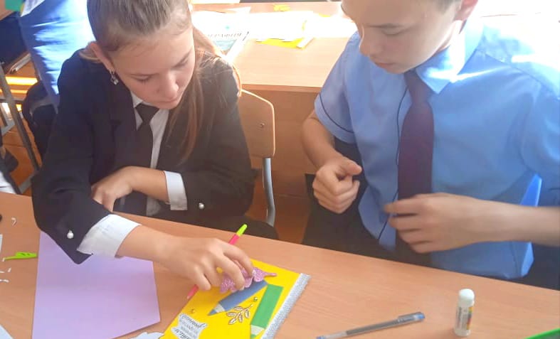 Биләр үзәк балалар китапханәсе хезмәткәрләре" Биләр урта гомуми белем бирү мәктәбе " МББУ Укытучылар көненә открыткалар ясау буенча 7 б психологик-педагогик сыйныф укучылары белән мастер-класс үткәрделәр!