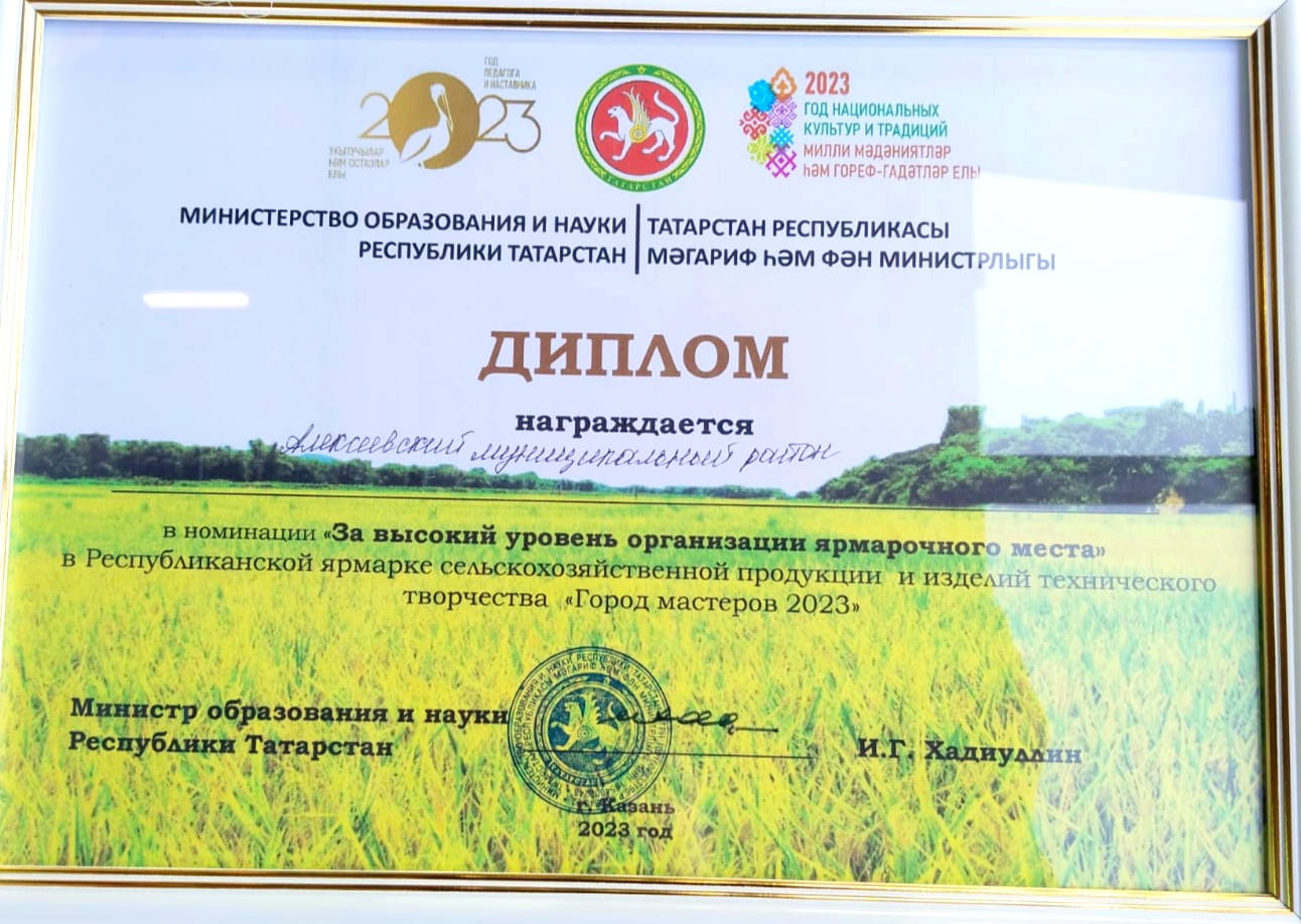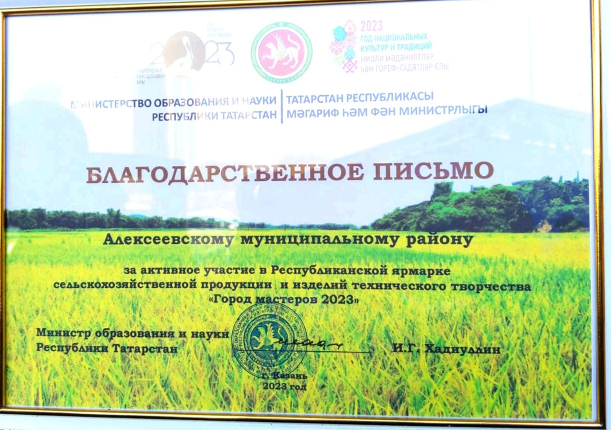 Сегодня, 16.09.2023г в Казани проходит республиканская ярмарка-выставка сельскохозяйственной продукции и изделий технического творчества «Город мастеров». МБОУ "Билярская СОШ" приняла активное участие в ярмарке и реализовала наибольшую часть своей плодоовощной продукции, консервированных заготовок, мёда. За организацию ярмарочного места наградили дипломом и благодарственным письмом.