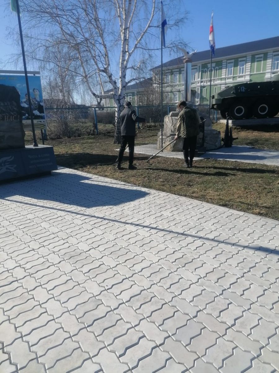 Уборка территории около Вечного огня/Мәңгелек ут һәм Бөек Ватан сугышында катнашучыларга һәйкәл янындагы территорияне җыештыру 11.04.2023