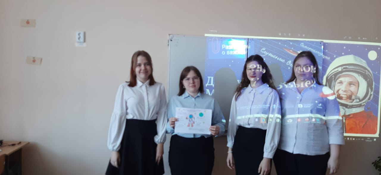 10.04 барлык сыйныфларда Космонавтика көненә багышланган мөһим нәрсә турында сөйләшү дәресе узды, балалар космик киңлекне үзләштерү, кызыклы фактлар, анда катнашкан кешеләр һәм алга таба космик тармакны үстерү турындагы казанышлар белән таныштылар.