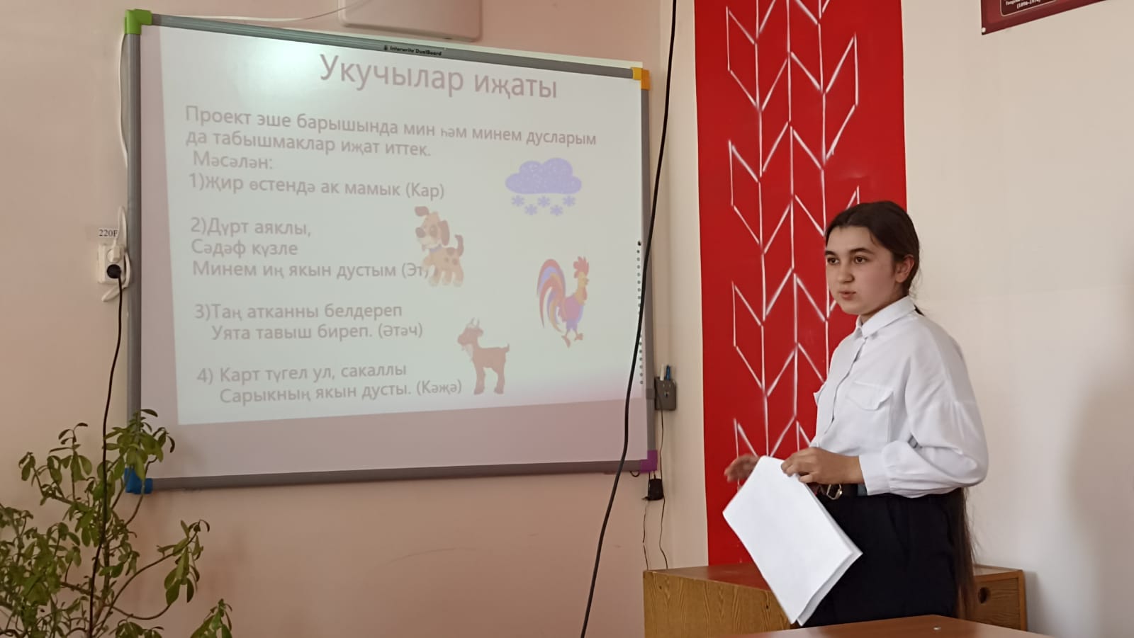 Барлык балалар да проектны язуга җаваплы һәм җитди карадылар, проектта ничек эшләве турында сөйләделәр. Шул ук вакытта күп вакытны әзерләүгә багышланган күзаллау материалын да күрсәттеләр, алган белемнәрен һәм осталыкларын гамәлдә тормышка ашыру һәм тормышка ашыру нәтиҗәсен күрсәттеләр. Яклауда сыйныф җитәкчеләре, ШМО җитәкчеләре, мәктәп администрациясе катнаша.