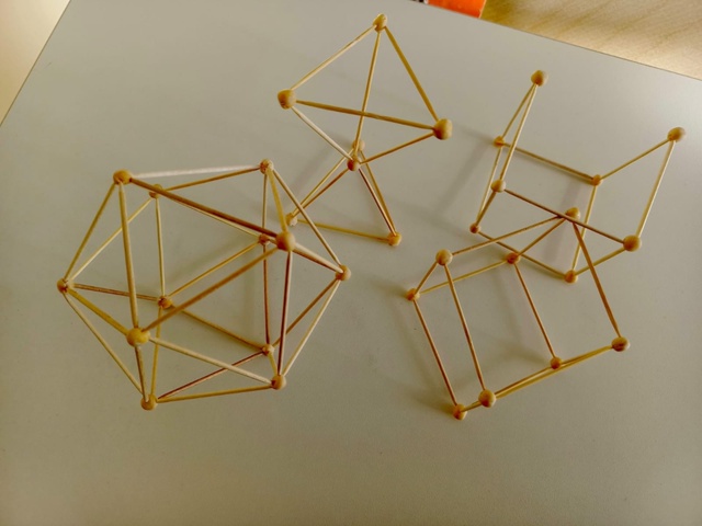 Ученики 5-х классов, посещающие кружок "Физмат прорыв", совершили увлекательное путешествие в мир геометрии! Ребята познакомились с удивительными Платоновыми телами и получили возможность самостоятельно сконструировать модели из подручных материалов – гороха и зубочисток.
