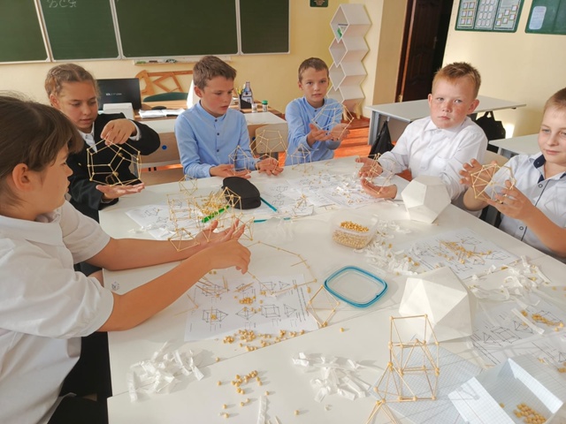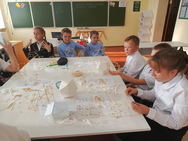 В результате кропотливого труда появились объемные модели тетраэдра, куба, октаэдра, додекаэдра и икосаэдра. Юные математики наглядно убедились в том, что геометрия – это не только формулы и теоремы, но и увлекательный мир конструирования и открытий."Физмат прорыв" түгәрәгенә йөрүче 5 нче сыйныф укучылары геометрия дөньясына мавыктыргыч сәяхәт ясадылар! Балалар гаҗәеп Платон гәүдәләр белән таныштылар һәм кул астындагы материаллардан – борчак һәм теш чистарткычлардан мөстәкыйль рәвештә модельләр ясау мөмкинлеге алдылар. Тырыш хезмәт нәтиҗәсендә тетраэдр, куб, октаэдр, додекаэдр һәм икосаэдрның күләмле модельләре барлыкка килгән. Яшь математиклар геометриянең формулалар һәм теоремалар гына түгел, ә конструирование һәм ачышларның мавыктыргыч дөньясы булуына ачык инандылар.