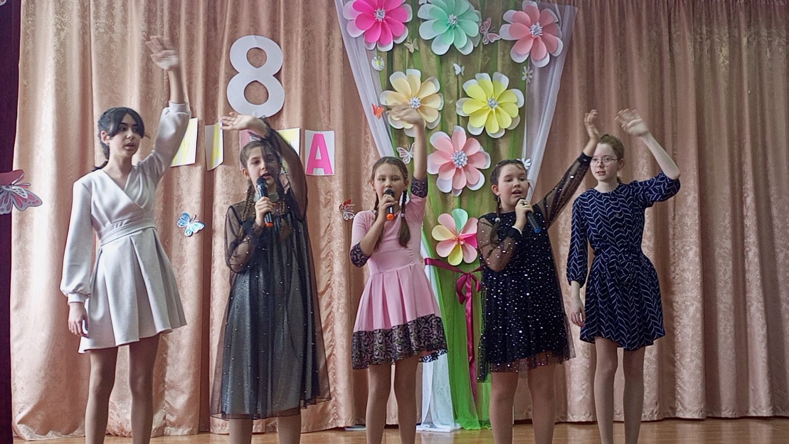 6.03 в преддверии праздника, в школе прошло праздничное мероприятие, посвящённое международному женскому дню, обучающиеся подготовили разнообразные номера художественной самодеятельности. Поздравления, песни, стихи звучали для присутствующих в зале мам, бабушек, учителей и учениц.