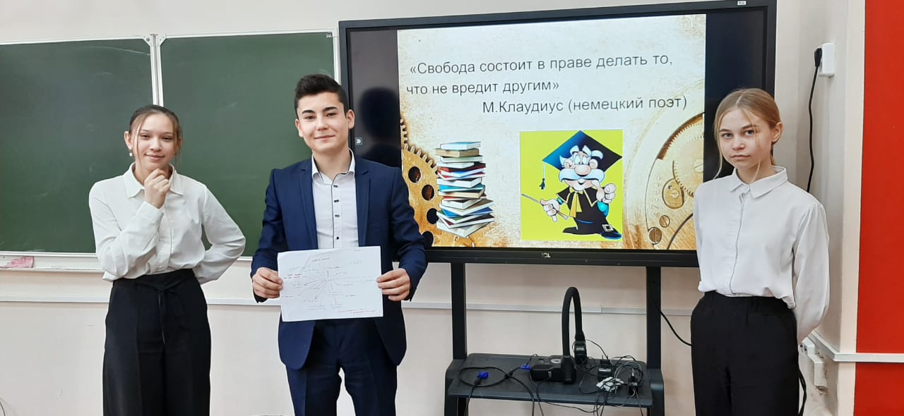 9.12.2022 10 нчы сыйныфта Анна Александровна "Кеше хокуклары"дигән дәрес-викторина үткәрде. Викторина төрле дәрәҗәдәге биремнәрне һәм ситуацион биремнәрне үз эченә алган .Безнең тормыш юридик нормалар һәм законнар белән бәйле бит.