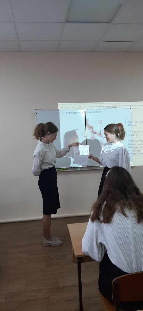"Мама-главное слово в каждой судьбе" . Цель занятия: показать обучающимся важность того, чтобы в традиционной семье было много детей; продемонстрировать поддержку материнства в нашей стране. Ребята познали понимание ценности семьи и ответственность за ее благополучие через любовь и уважения к матери.