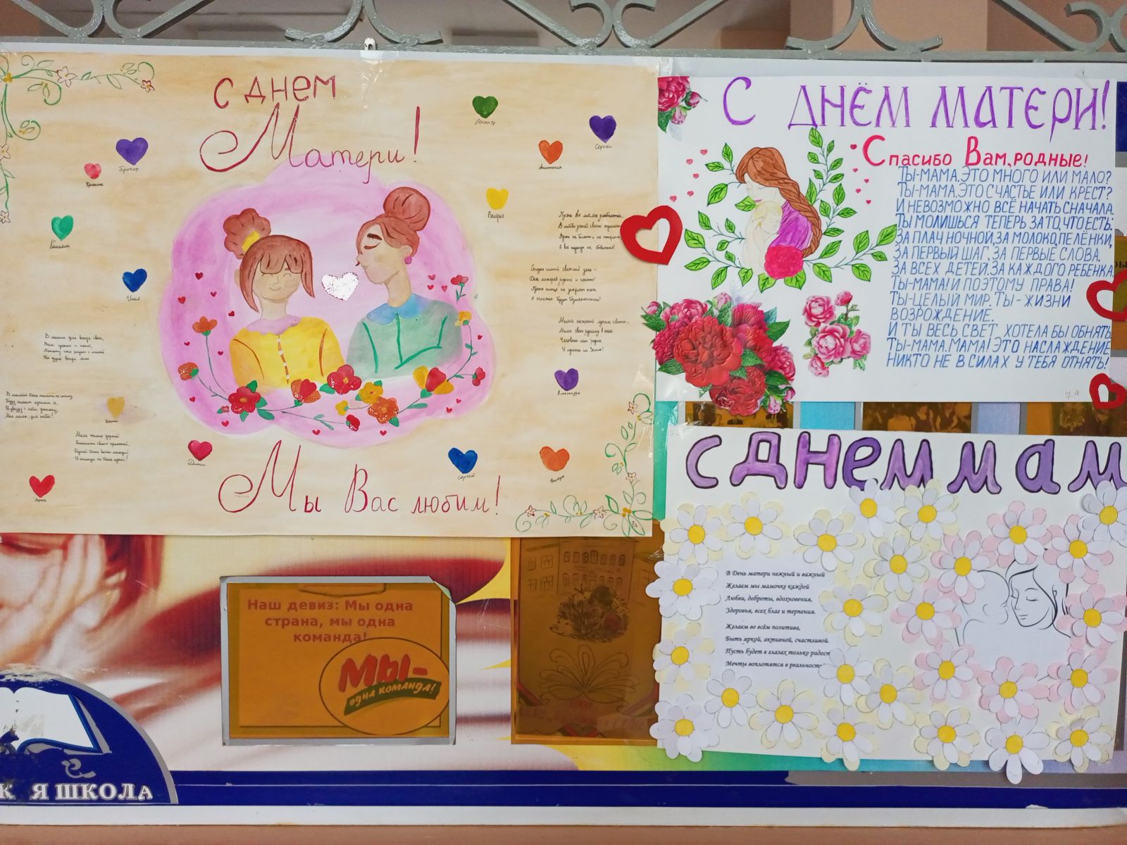День Матери — это тёплый, сердечный праздник. И сколько бы хороших, добрых слов не было сказано мамам, лишними они никогда не будут. В связи с этим в нашей школе было проведено общешкольное мероприятие, посвященное Дню матери. Совместно с классным руководителем учащиеся, подготовили свои выступления, охватывающий школьников 1-11 классов. Дети проявили активное участие.