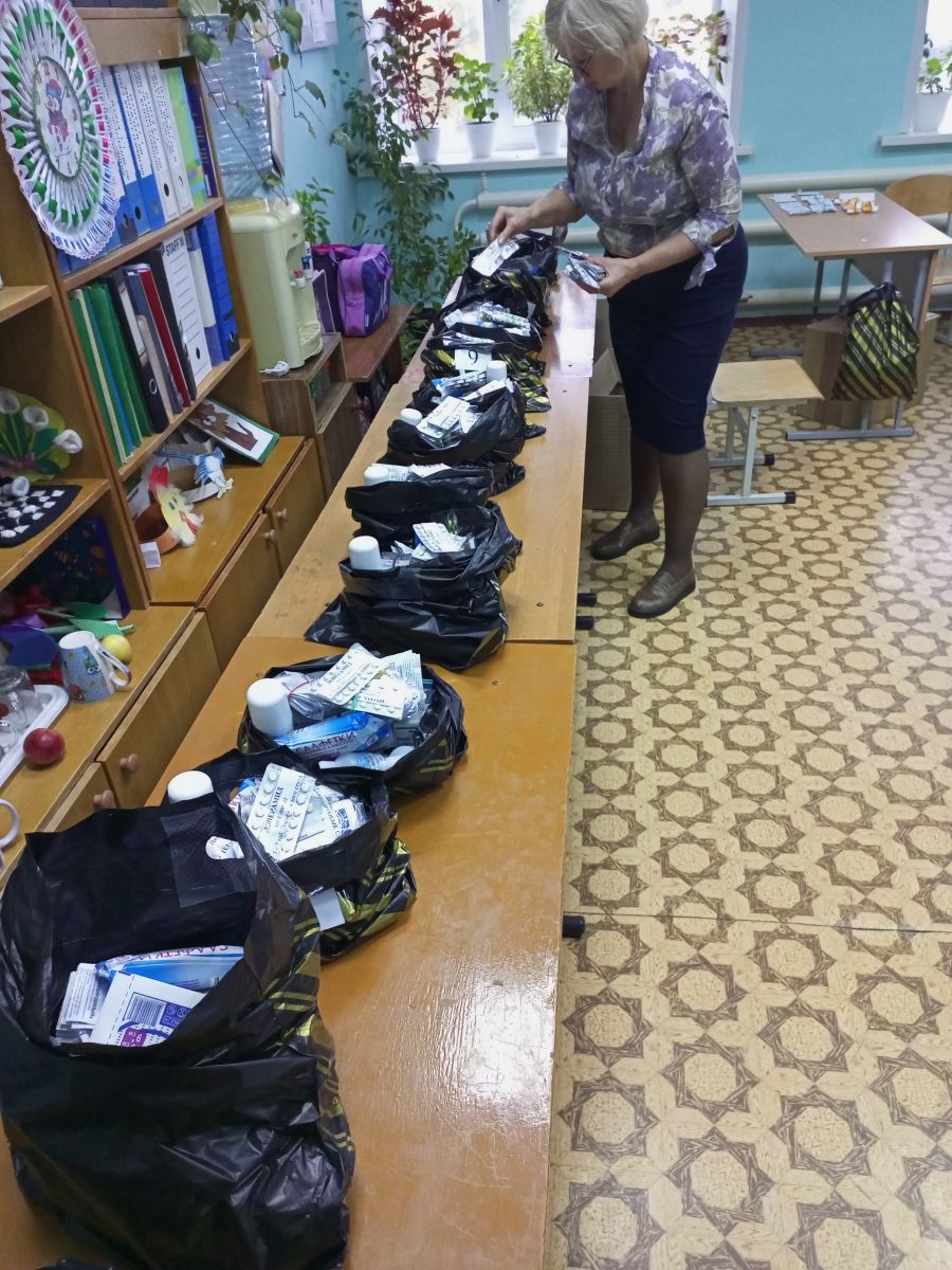 Работники МБОУ Билярской СОШ, приняли участие в гуманитарной помощи Российским военнослужащим на территории Украины, собрав аптечку мобилизованным.