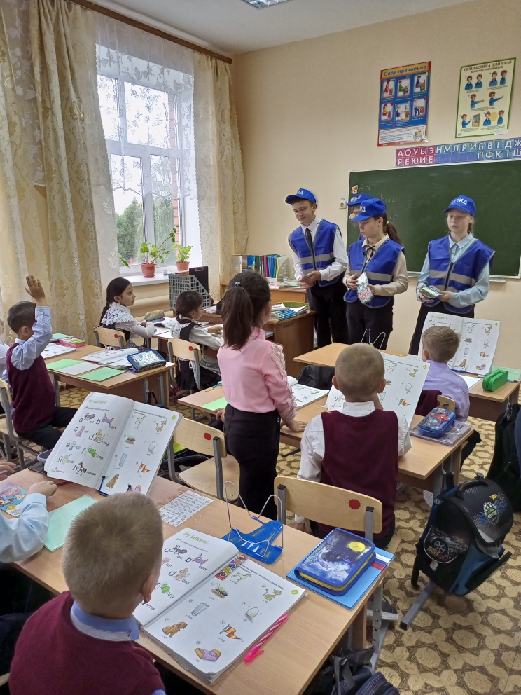 "Игътибар-балалар!" профилактик айлык кысаларында "Светофор" мәктәп отрядында катнашучылар башлангыч звено укучылары алдында чыгыш ясадылар һәм аларга белешмәлекләр тараттылар. Балалар шигырьләрдә һәм җырларда юл йөрү кагыйдәләрен һәм аларны үтәргә кирәклекне кирәклеген искә төшерделәр.