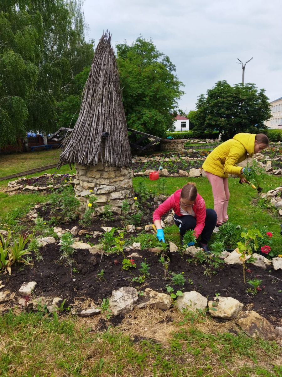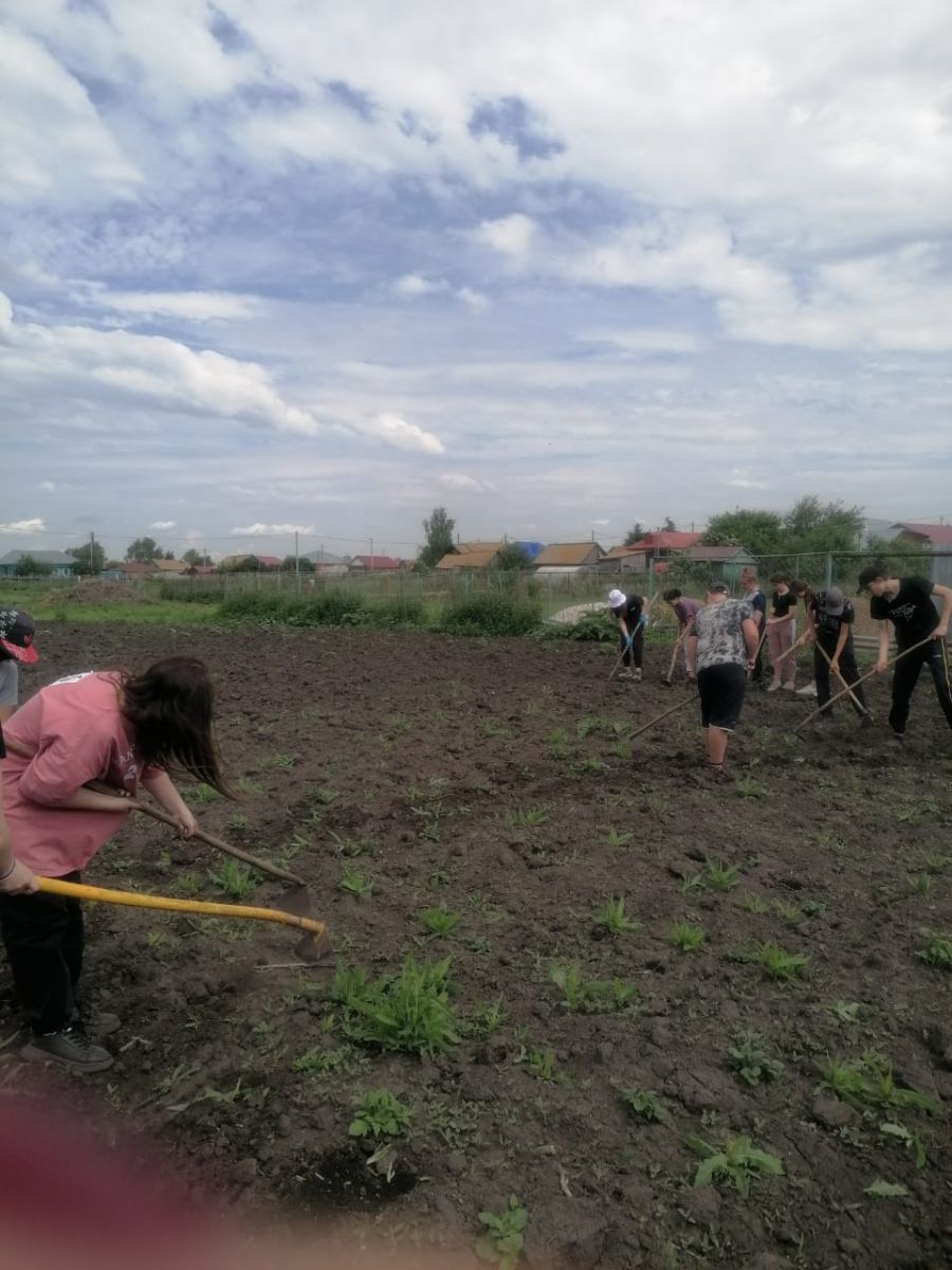 Биләр урта мәктәбенең «Олимпик» мәктәп яны хезмәт һәм ял лагерында тәрбияләнүчеләр мәктәп бакчасы территориясен тәртипкә китерәләр.