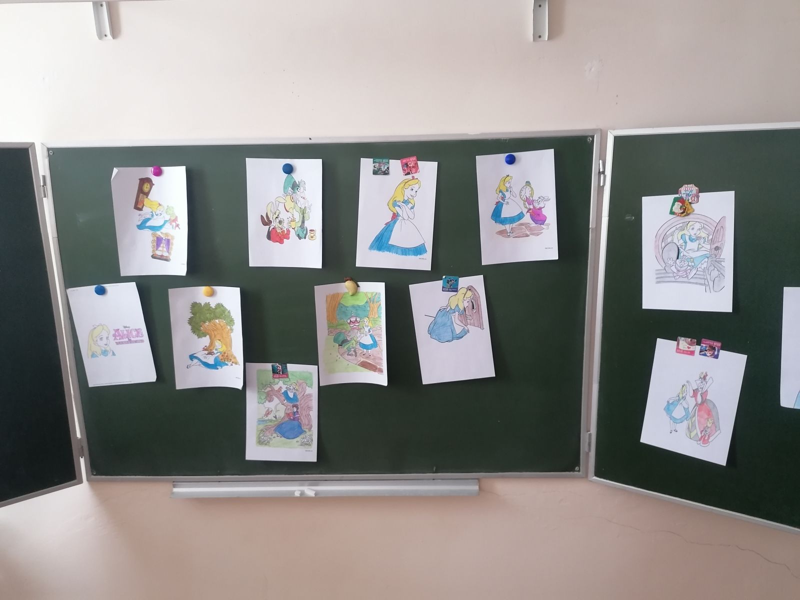 В школе началась неделя иностранного языка . Сегодня среди 7 классов было проведени литературная викторина порассказу Льюис Кэрролл «Алиса в Стране чудес»