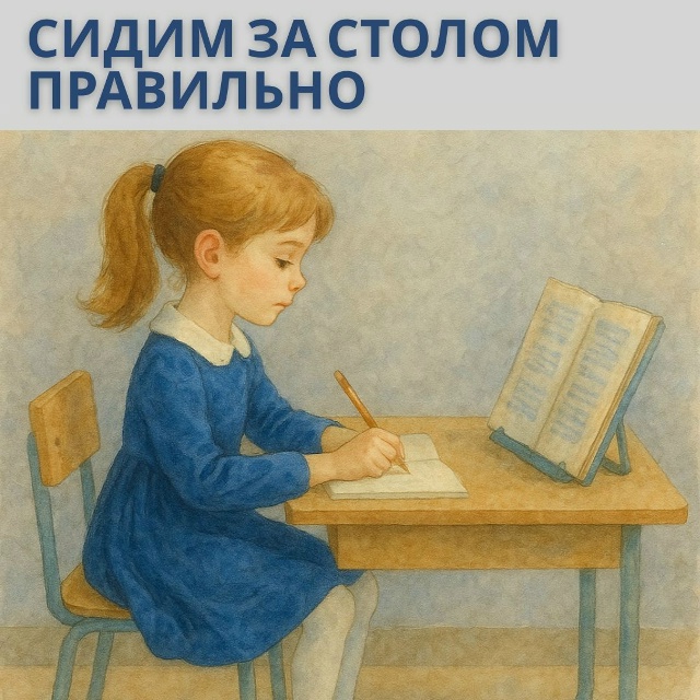 Расстояние до стола: Грудь должна находиться на расстоянии ладони от края парты. Так не придется сильно наклоняться к тетради.