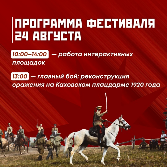 реконструкция сражения за Каховский плацдарм.Подробную программу фестиваля смотрите в наших карточках.
