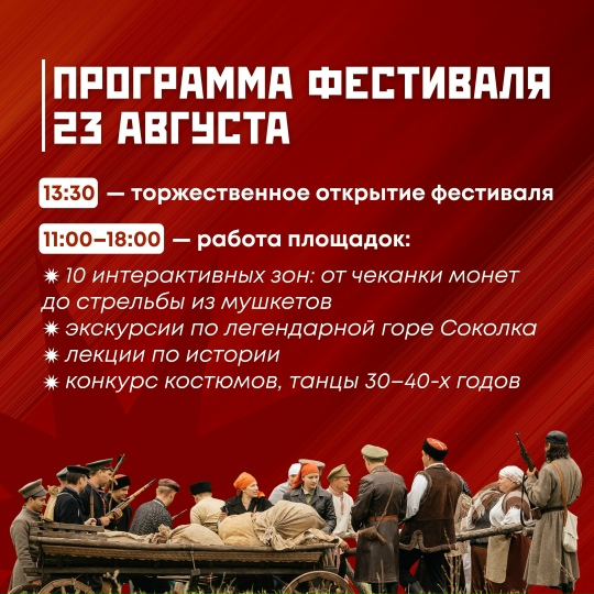 Вакыт сәяхәтенә әзерме? 23-24 августта Югары Ослан районында Соколка-2025 Мультиэпохы төбәкара фестивале узачак! Гражданнар сугышы чоры вакыйгалары турында күбрәк белегез. Сезне көтәләр: лек лекцияләр, эк экскурсия, музык музыкаль программа ка Кахов плацдармы өчен сугышны реконструкцияләү. Фестивальнең җентекле программасын безнең карточкаларда карагыз. Чара Россия хәрби-тарихи җәмгыятенең Татарстан бүлеге ярдәмендә уза. #ЛЕТОВТАТАРСТАНДА