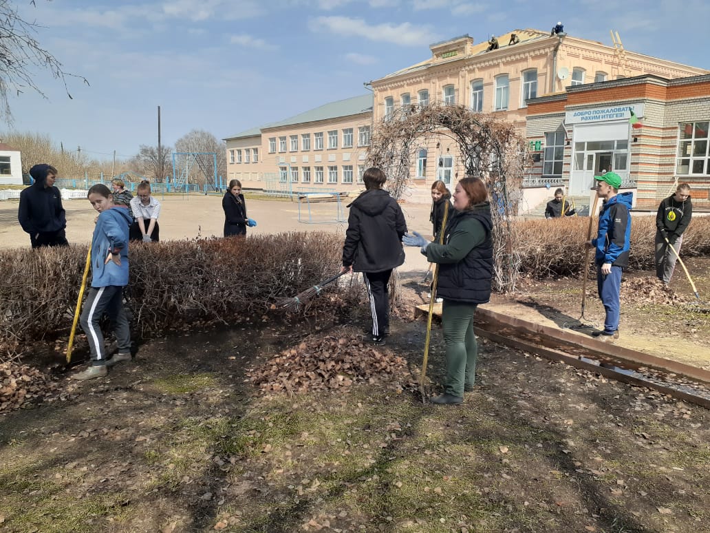 Учащиеся МБОУ "Билярская СОШ" в рамках Всероссийских субботников и экологических акций приступили к уборке территории возле школы.