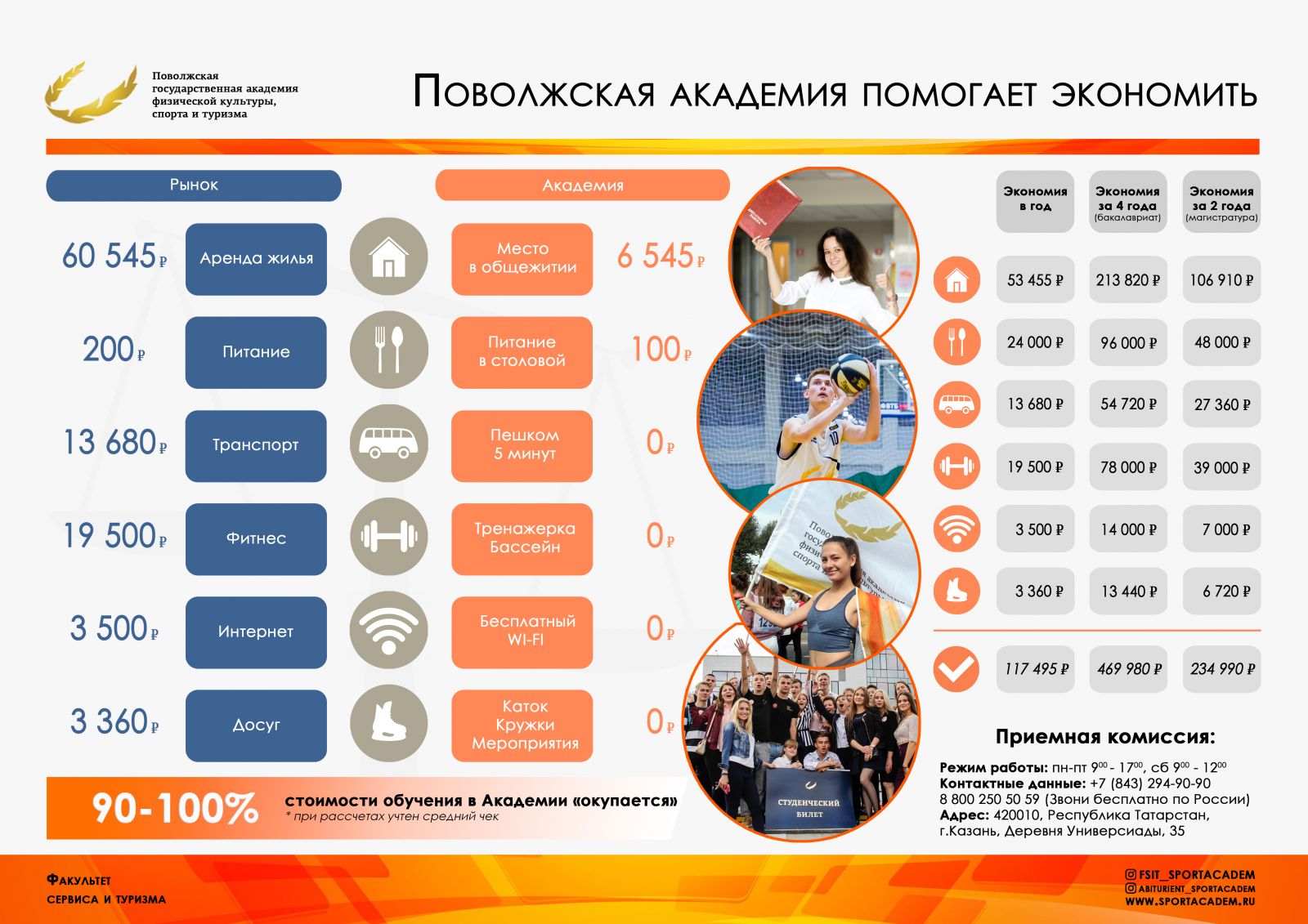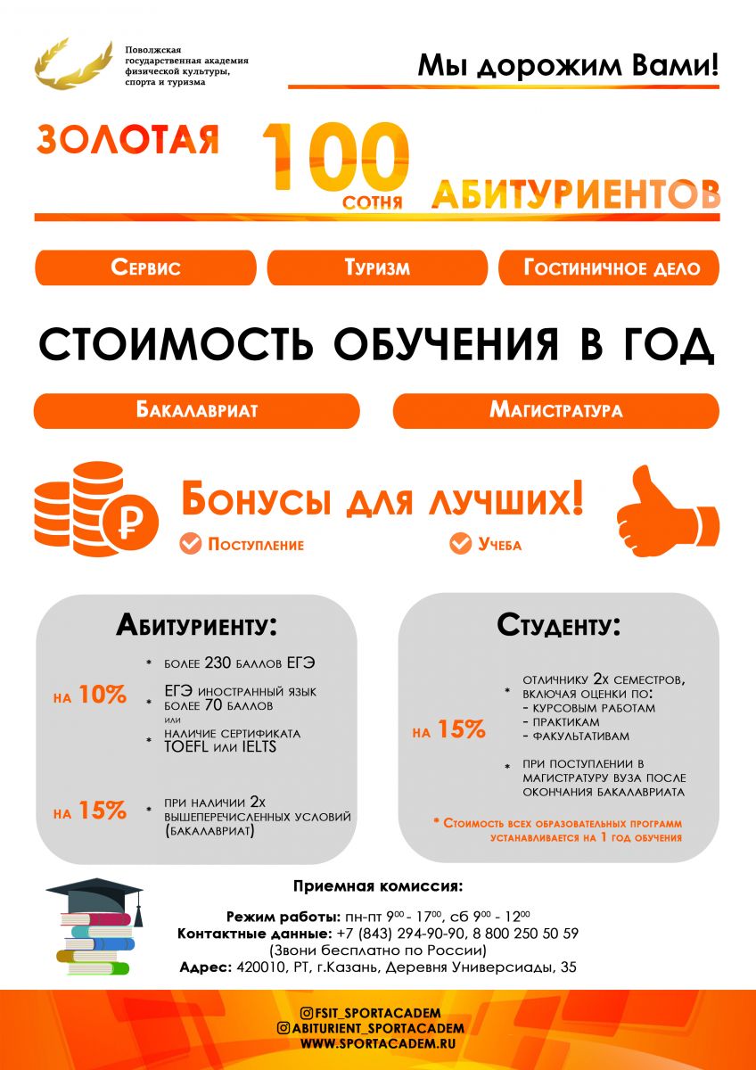 Поволжская государственная академия физической культуры, спорта и туризма продолжает набор на направления обучения: