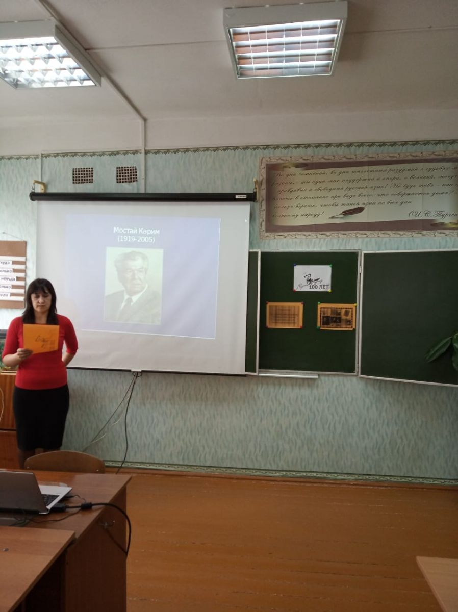 20 октября 2019 года исполнилось 100 лет со дня рождения народного поэта Башкортостана, заслуженного деятеля искусств Российской Федерации, героя Социалистического Труда, поэта и писателя Мустая Карима. В целях знакомства учащихся и молодежи с творческим наследием М.Карима, приобщения к отечественной культуре и ценностям национальной литературы, воспитания общероссийского гражданского сознания и чувства любви к многонациональному Отечеству, были проведены выставка и классные часы, на которых учащиеся нашей школы познакомились с творчеством поэта. -