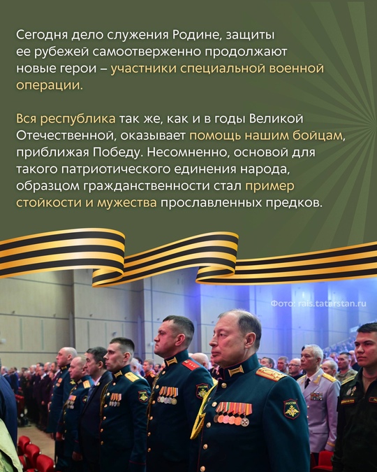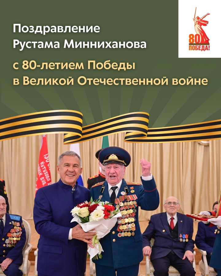 Кадерле язылучылар! Сезне Бөек Җиңүнең 80 еллыгы белән котлыйбыз! Без фронтта һәм тылда күптән көтелгән Җиңүне якынайткан бабаларыбызның, бабаларыбызның, ти-бабаларыбызның батырлыкларын хәтерлибез һәм хөрмәт итәбез. Аларның фидакарьлеге ватанпәрвәрлек һәм Ватанны ярату үрнәге булсын, ә безнең йөрәкләрдә һәрвакыт җиңүчеләр буынына рәхмәт хисләре яшәсен. Күптән көтелгән бу дата белән татарстанлыларны Республика рәисе Рөстәм Миңнеханов котлады. Карточкаларда аның мөрәҗәгатеннән цитаталар җыйганнар. Сезнекеләр род-Ватанны саклаучыларга безнең уртак рәхмәтебезнең бер өлеше бу! Хәтерлибез!Горурланабыз! #Җиңү 80