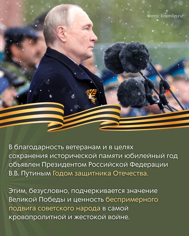 - Распространение Георгиевской ленточки — символа воинской доблести и героизма советских солдат, защитивших Родину в годы войны.