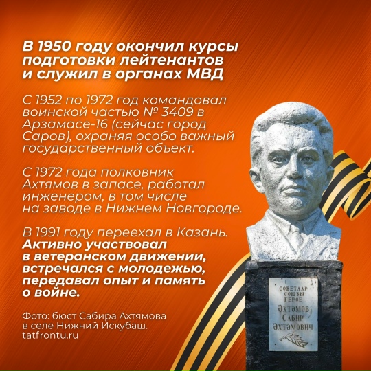 Сегодня наш рассказ о Сабире Ахтямове, который совершив подвиг в 18 лет, в 19 был удостоен звания Героя Советского Союза