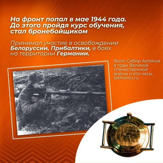 Сезне Татарстаннан Бөек Ватан сугышы геройлары белән таныштыруны дәвам итәбез 18 яшендә батырлык күрсәтеп, 19 яшендә Советлар Союзы Герое исеменә лаек булган Сабир Әхтәмов турындагы хикәябез бүген Совет Побед Җиңү Парады репетициясендә офицерларның берсе кече сержант Әхтәмовны 170 сантиметрдан да тәбәнәгрәк булганга сафка кертергә теләмәде, ләкин җыелган полк командиры Сабирның күкрәгендә орденнар күреп: «андый бөркетне алмассың! " - дип кычкырып җибәрде.». Сабир Әхтәм улы Әхтәмовның тормышы һәм батырлыгы турында тулырак безнең карточкалардан укыгыз. #Победа80 #Героитатарстан