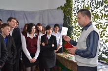 Сегодня в музее поисковой дятельности военно - патриотического Клуба "Юнармеец" им. полного кавалера ордена Славы Шляпникова М.С." был проведён урок нравственности на тему: "Поисковое движение России в год 70-летия Победы". Участвоваший в уроке 9а класс с огромным вниманием слушал рассказ о погибшем без вести в 1943 году уроженце села Билярск Мясникове П.М. , оказавшемся прадедушкой одного из учеников данного класса.