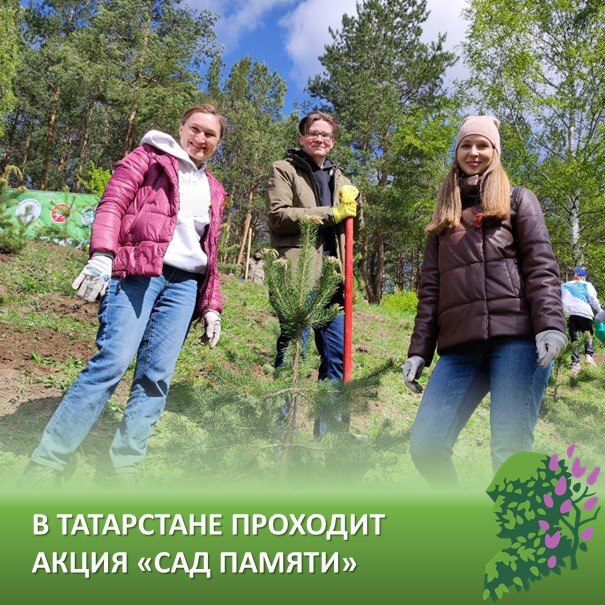 Бөек Ватан сугышында һәлак булганнар истәлегенә агач утыртыгыз! 21 апрельдән 26 апрельгә кадәр Татарстанда ел саен үткәрелә торган «Хәтер бакчасы»халыкара акциясе узаАның максаты-Ватаныбызны саклаучылар истәлеген саклау, шулай ук илебезнең урман байлыкларын саклау. Акциягә теләгән һәркем кушыла ала. Инвентарьны һәм үсентеләрне урында бирәчәкләр. Урын сайлау һәм теркәлү сад-памяти.рф сайтында бар. монда сез сайланган мәйданчыкта утырту датасы һәм вакыты турында мәгълүмат, шулай ук координатор элемтәләре табарсыз. #Җиңү 80