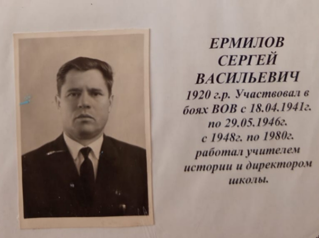 Ермилов Сергей Васильевич окончил Билярскую среднюю школу в 1938 году и поступил в Казанский педагогический институт. Весной 1941 года он был призван на службу в Красную Армию. В июле 1941был зачислен курсантом в Бердичевское военно- пулеметное училище, которое окончил в в марте 1942 года в звании лейтенанта. Прошел всю войну и был демобилизован в 1946 году. После Великой Отечественной войны продолжил учебу в педагогическом институте. Всю трудовую жизнь служил учителем истории в родной школе. С 1960 года, в течение 20 лет, возглавлял педагогический коллектив школы.