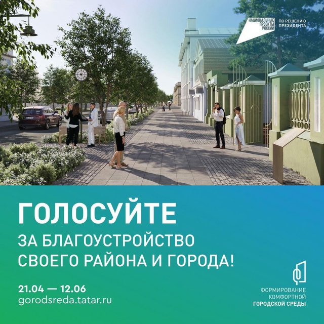 Киләсе елда районыбызда нинди җәмәгать киңлеге төзекләндереләчәген сайлыйбыз! Төзекләндерү объектлары-парклар, скверлар, яр буйлары өчен бөтенроссия онлайн – тавыш бирү башланды. Үз тавышыңны республика дәүләт хезмәтләре порталында түбәндәге сылтама буенча бирергә мөмкин: clck.ru/3LZfDR яки " ТР Хезмәтләре «мобиль кушымтасында. Тавыш бирү «яшәү өчен Инфраструктура» милли проектының «Уңайлы шәһәр мохитен формалаштыру»Федераль проекты кысаларында уза.