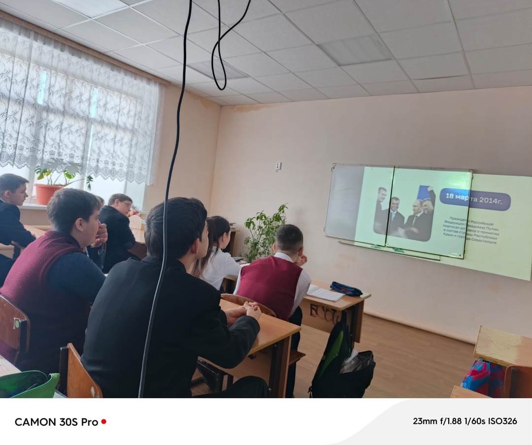 Во время линейки вся школа узнала о Дне воссоединения Крыма с Россией, о значимости этого события для нашей страны и для нас, как для граждан. Это момент, который напоминает нам о единстве и важности исторической памяти.