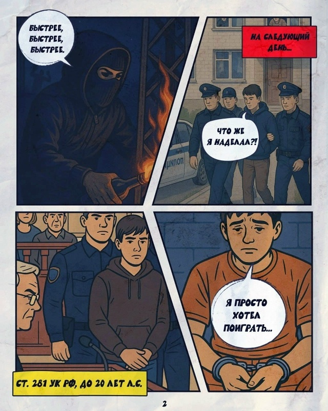 Первые задания выглядят безобидными: сфотографировать, посчитать что-то, оставить комментарий. Потом задания становятся другими: поджечь или испортить тот самый объект. Ребенка могут шантажировать, запугивать, втягивая в преступление.