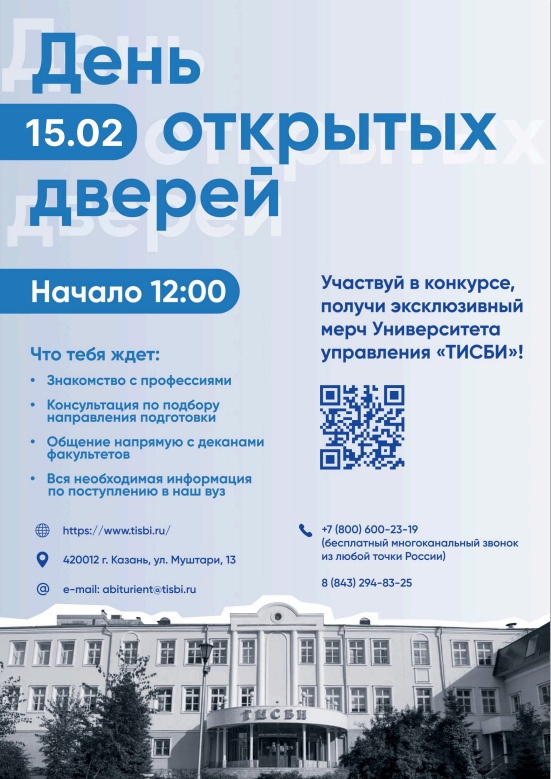 УВО «Университет управления «ТИСБИ» 15 февраля 2025 года проводит День открытых дверей.