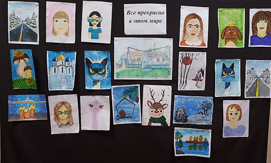 В рамках предметной недели ИЗО, технологии и музыки организована яркая выставка "Все прекрасно в этом мире"