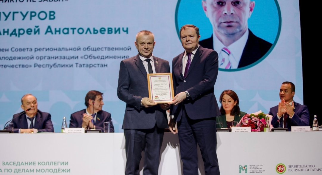 Чугуров Андрей Анатольевич - директор МБУ Подростковый клуб «Юнармеец», член Совета Региональной общественной молодежной организации «Объединение «Отечество» Республики Татарстан награжден Дипломом за 1 место в номинации «Наставник» в рамках окружного общественного проекта «Слет поисковых отрядов Приволжского Федерального округа «Никто не забыт»Награду в рамках итоговой коллегии министерства по делам молодёжи РТ нашему земляку вручил В.Н. Демидов, главный федеральный инспектор по Республике Татарстан аппарата полномочного представителя Президента Российской Федерации в Приволжском федеральном округе.Поздравляем!